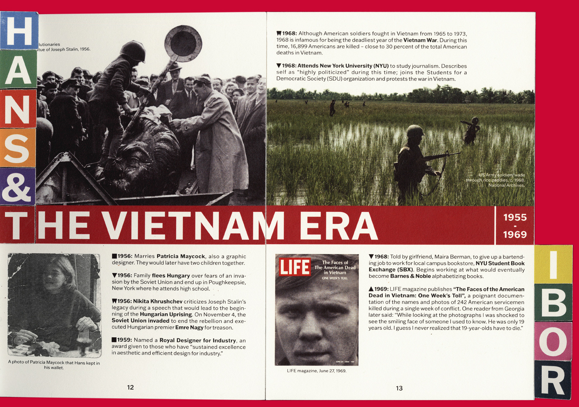 Two Designers Timeline—Accordion-style fold out book detailing history of two chosen designers' lives and other important historical events.