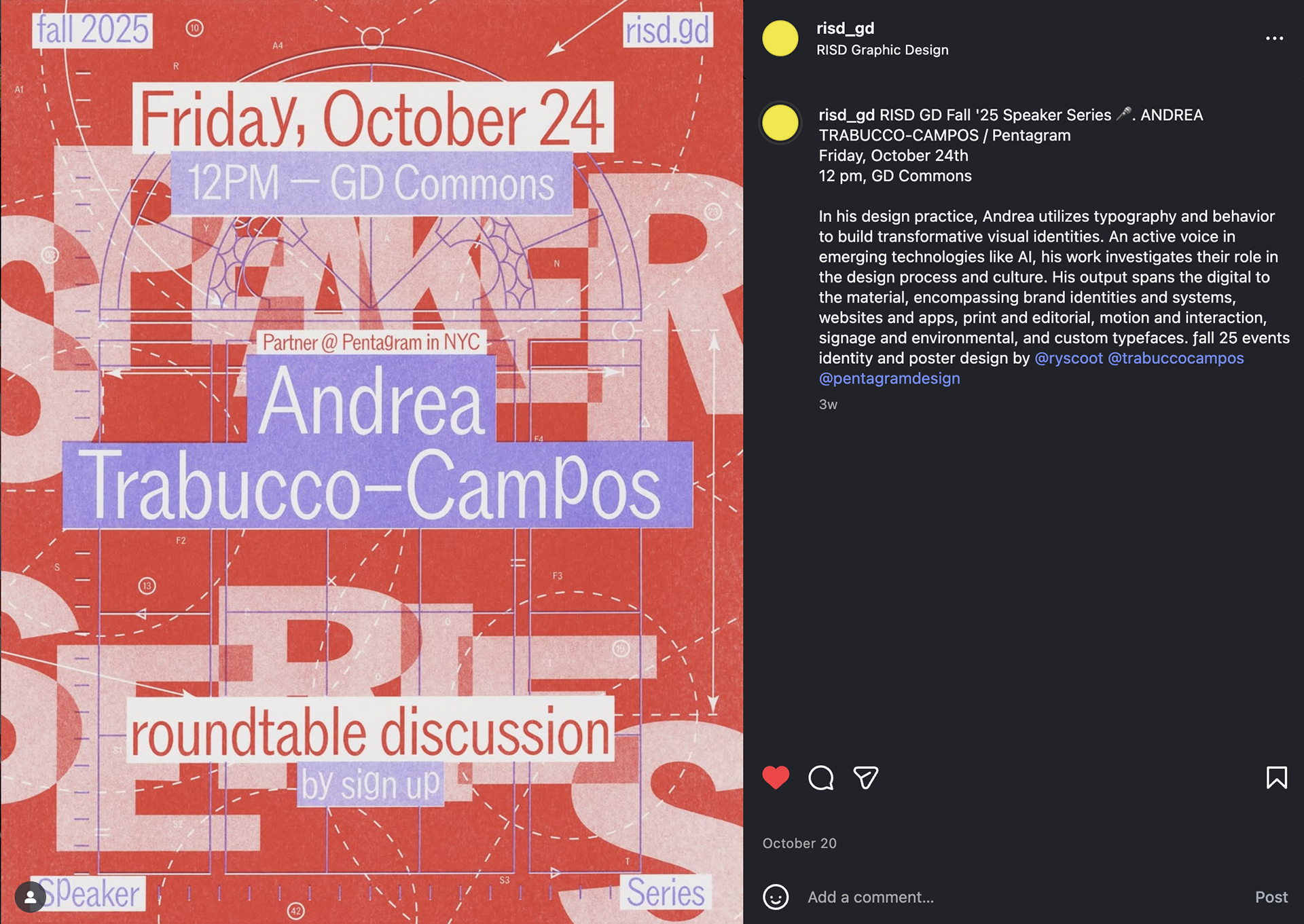 RISD GD Fall 2025 Speaker Series—A subversive poster identity and print series commissioned by RISD Graphic Design faculty Ramon Tejada and Nancy Skolos to promote upcoming events.