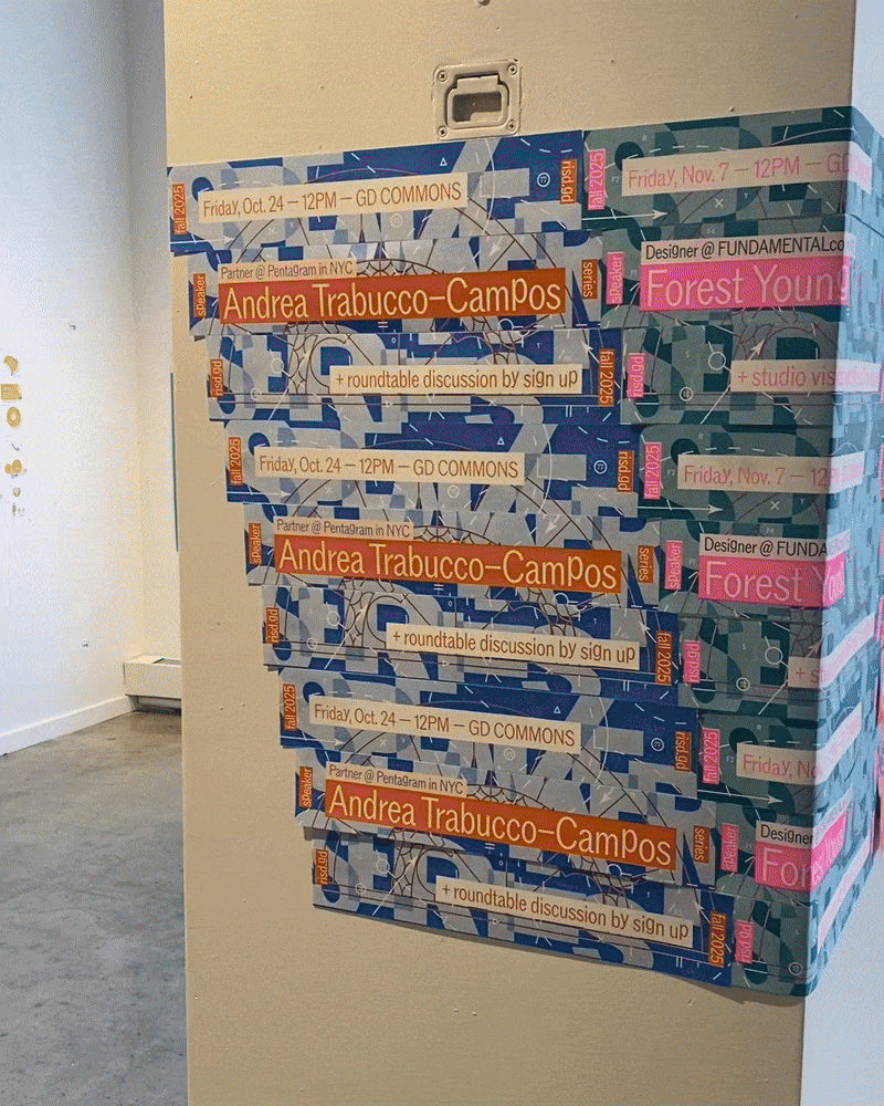 During the late summer of 2025 I was asked by members of the Rhode Island School of Design's Graphic Design faculty to design, print, and display a series of posters to promote the upcoming Fall Speaker Series—an annual collection of events inviting industry professionals to come speak to students and members of the RISD community.