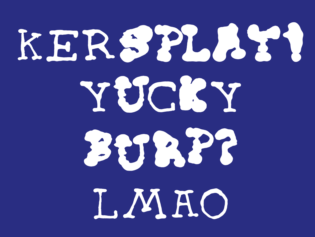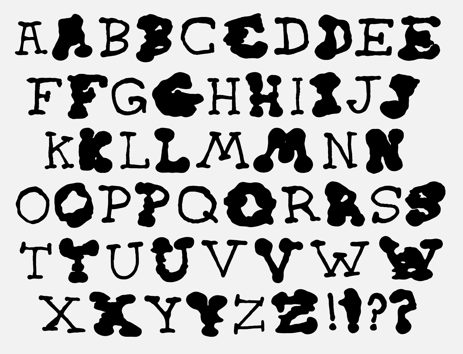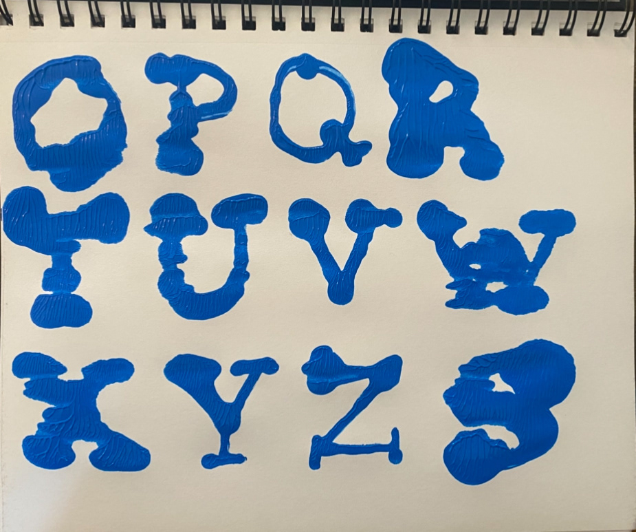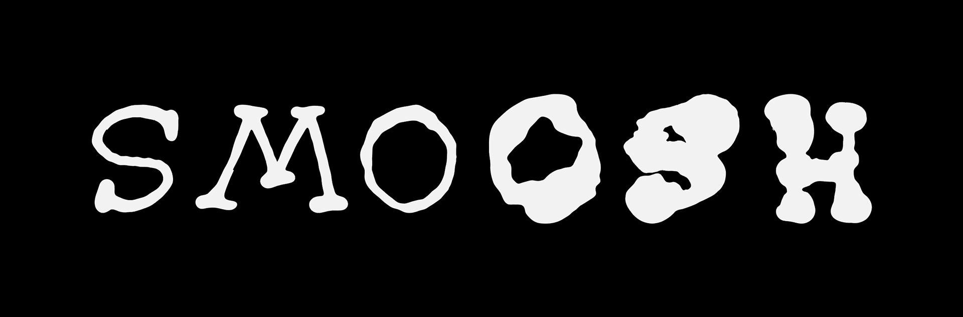 This variable typeface was created by writing letterforms with a tube of paint and then "smooshing" two pieces of paper together, hence the typeface's name. Through this exercise I was able to appreciate the uncontrollable parts of design and challenge myself to see how far I could take the process to create uniques forms. Using the two states of the letter as a starting point, I then experimented with writing multi syllabic words with them and using the smooshed variations to emphasize the rhythm of the spoken word.